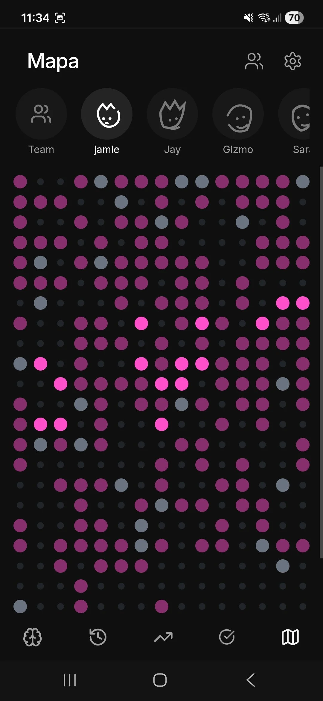 Historial tipo heatmap y análisis detallado muestran exactamente dónde persisten las brechas.